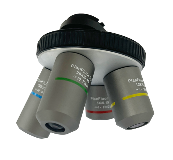 2.選裝轉換鼻輪:可以加轉4孔位轉換鼻輪,4個孔位分別安裝5倍、10倍、20倍和50倍物鏡。