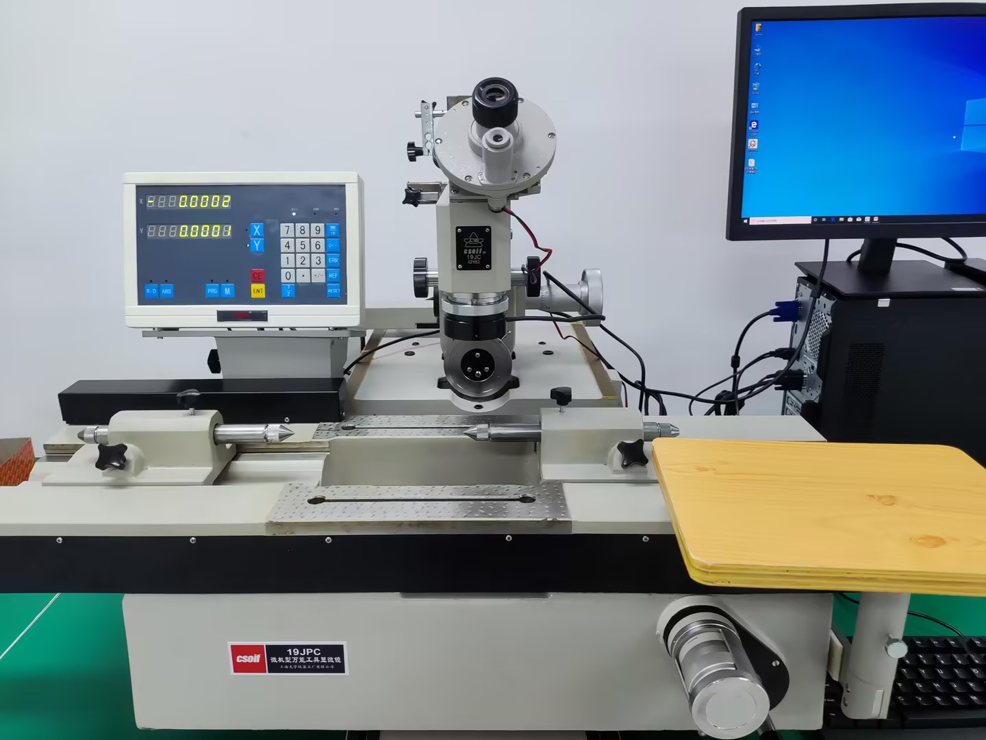微機型萬能工具顯微鏡19JPC是在傳統的數字式萬能工具顯微鏡19JC的基礎上采用計算機技術對測量數據進行數據處理。軟件的可組合性和可開發性增強了系統的功能,在更大范圍內滿足廣大用戶的需要。微機型萬能工具顯微鏡是機械、電子制造業、計量測試院、所及大、專院校機械專業公差實驗室廣泛使用的一種多用途計量儀器。可以用來測量量程內的任何零件的尺寸、形狀、角度和位置。且具有二套讀數系統(電腦與數顯表)。